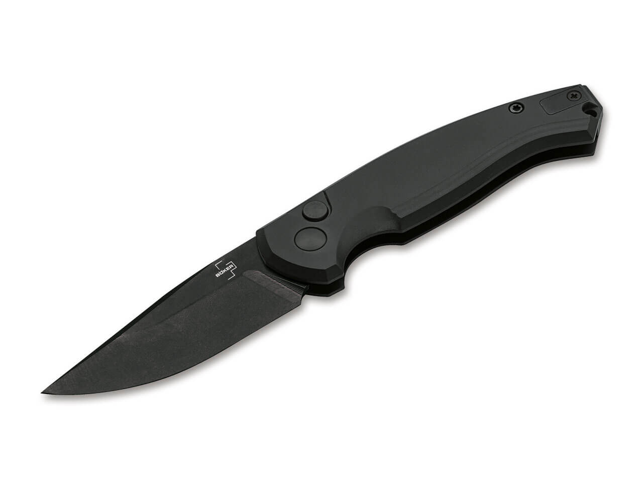 Whether the European Black Widow Spider has been a source of inspiration for the Boker Plus Karakurt remains the secret of Danish knifemaker Jesper Voxnaes. However, there are numerous indications that point to the black poisonous spider. The biting clip point blade, made of 154CM steel, strikes from the ambush and snaps shut mercilessly immediately after pressing the push button. The high quality stainless steel convinces with a hardness of 58 to 59 HRC. Preferred prey include the diverse cutting tasks of everyday life which this pocket knife easily catches, due to its impressive features. The handle is made of anodized 6061-T6 aluminium, that is ergonomically shaped and sits securely in the hand even for difficult tasks. The wave-shaped hand serrations on the underside guarantee a superior grip. The knife also intimidates its prey with a convertible pocket clip (tip-up/l-r) and a practical lanyard hole. Includes a high quality nylon case for storage. Blade length: 3.07. Thickness: 3.1mm. Overall length: 7.56. Weight: 3.4 oz. Available in two versions: