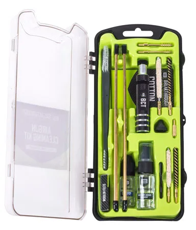 Breakthrough’s compact Vision Series Cleaning Kit line offers you everything you need to ensure a thorough clean. Its plastic tray keeps all the various pieces of the kit organized neatly inside a durable case that acts like a mini toolbox. This Airgun cleaning kit come with four (4) brass rods, handle, 3 brushes ( (2)bore brush, double end brush), (2) cotton mops, muzzle guard, brass patch holder, (2) brass jags, box of patches, box of woolen felts, an adapter, 15ml bottle of Breakthrough military grade solvent, and a 12ml bottle of Battle Born high-purity oil.