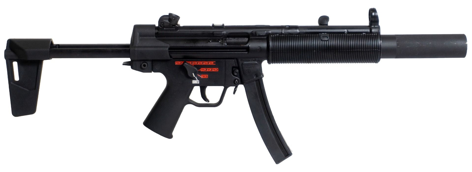 The Century Arms AP5-SD is chambered in 9mm with a capacity of 30+1 rounds has an overall length of 24.75/30 inches a width of 2.3 inches a height of 8.3 inches a cold hammer forged barrel length of 5.75 inches and an unloaded weight of 6.66 lbs (3kg). The AP5-SD is suppressor ready with an optional Magpul MP BSL Brace 1/2×28 thread and 3 lug adapter equipped with a removable Faux Suppressor and ambidextrous selector. It has a MP5 Navy style grip and comes with a Claw mounted 1913 Picatinny Rail. – WEIGHT 6.66 lbs – CAPACITY 30+1 rounds – FRONT SIGHT Fixed – CARTRIDGE 9mm Luger – MAGAZINE TYPE AP5 Style Magazine – REAR SIGHT Fully Adjustable – MUZZLE Removable Faux Suppressor – MAGAZINE INCLUDED 2 x 30-Round Magazine – FINISH COLOR Black – OVERALL LENGTH 30 – ACTION TYPE Semi-Automatic – STOCK MATERIAL Synthetic – BARREL LENGTH 5.75 – RECEIVER stamped – MANUFACTURED Made in Turkey
