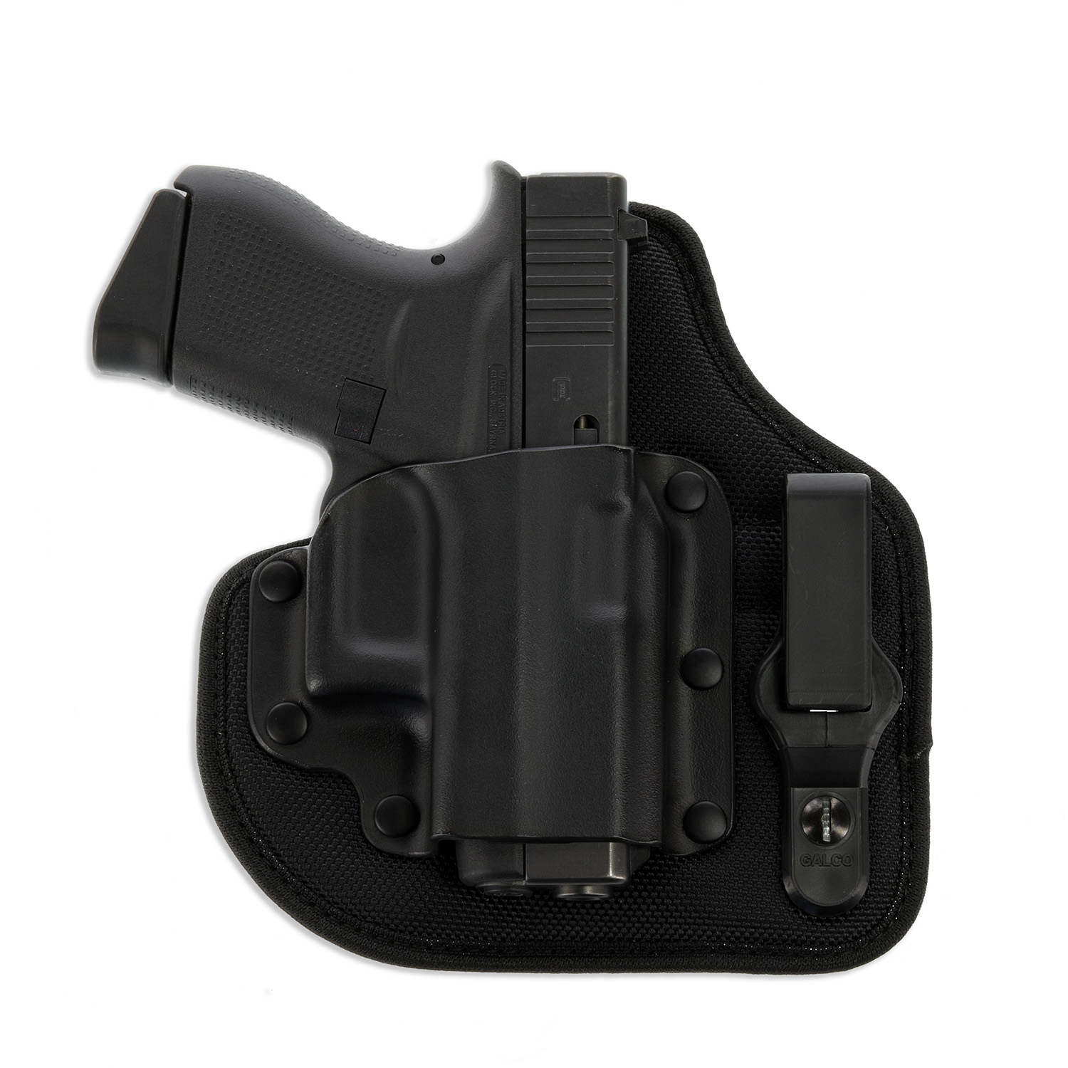 The QuickTuk Cloud combines extremely comfortable carry with superior concealment. The QuickTuk Cloud’s outstanding comfort level comes from its innovative backing plate, composed of a ballistic nylon front over a closed cell foam body. The back portion of the plate that rides against the wearer is lined with Galco’s Comfort Cloth, an Adaptive Performance Mesh that provides padding and moisture wicking. A rigid Kydex holster pocket provides fast draw and easy holstering while facilitating a full firing grip. Worn inside the waistband, the QuickTuk Cloud includes Galco’s patent-pending, tuckable polymer UniClip for excellent concealment, stability and easy on-off capability. The clip can be moved up or down in the corresponding holes in the backing plate, enabling the user to set the carry height to suit their unique preferences.