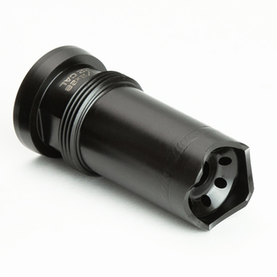 The Griffin Armament Universal Taper mount provides a rock solid sound suppressor interface for RECCE Paladin® EXPLORR and Sportsman Silencers. – Several years ago Griffin came out with a Linear comp for it’s Gate-LOK series of suppressors. Shortly afterwards consumers requested a version for their Taper Mount suppressors as well. Griffin has focusing more on muzzle device R&D than any other suppressor manufacturer. Billet machined from 2 pieces of 17-4 Stainless steel this device is precision TIG welded together to provide the largest possible internal expansion chamber in a Taper Mount. This design would be impossible to manufacture in a single CNC cut work piece. The welded on front cap features gas jet nozzles protected by a wire cutter shroud to focus concussive blast forward and away from the shooter and by standers in the immediate vicinity. CNC machining this device in two pieces is more expensive and time consuming than a single piece device for both machine time and human handling however no corners were cut to produce the optimal design. For users seeking the lowest concussion muzzle device that can be used either stand alone or with a suppressor this is the unit for them. – Diameter: 1.075 – OAL: 2.27 – Weight: 2.5oz – Materials: 17-4PH Stainless Steel – Finish: QPQ – Rock Solid Lock up – Free of wear prone geometry – Front cap shields blast and funnels it forward – Precisely calculated porting to encourage flow forward of the muzzle – Large internal expansion chamber to reduce concussion – Precision TIG welded assembly – Sacrificial baffle strategically engineered to extend the life of your suppressor – 17-4 PH Stainless steel to withstand hard use – Lustrous Melonite Finish – Griffin Laser Logo Marked – Shim set Included – Pre drilled 3mm hole for pinning and welding – Compatible with Recce Paladin EXPLORR Sportsman and Griffin Pistol Silencers with Taper Mount accessories