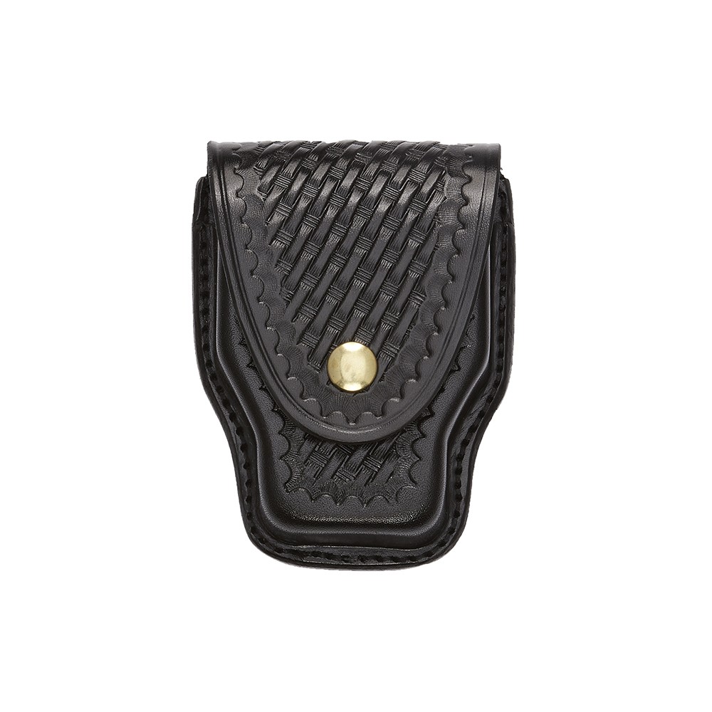 The Aker Leather 508 Handcuff Case is made from the highest grade of genuine vegetable tanned leather, and finished with solid brass snap fasteners in chrome, brass, or black. It is our most popular design and is made to fit standard chain or hinged handcuffs, including Smith & Wesson Model 100, or Model 1 handcuffs and the Peerless 700C, 730C, and 801C.