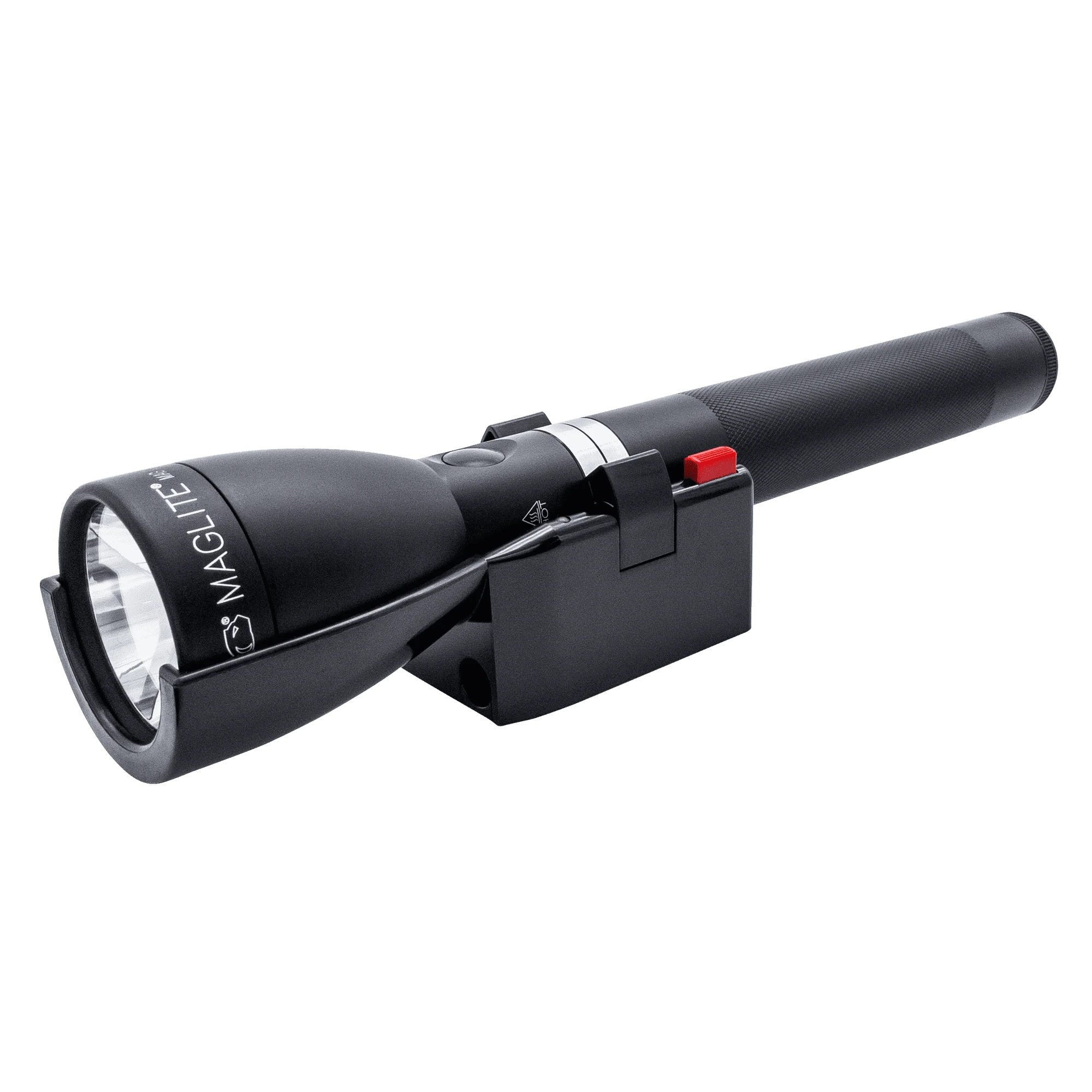 The ML150LR offers eco, low, and high power settings as well as a strobe mode, with momentary and constant-on operation, all controlled from a side-mounted push-button switch. The settings are further organized into four function sets: General (high, low, eco), Outdoor (high, low, strobe), Law Enforcement (momentary, high, eco) and Tactical (momentary, high, strobe). Runtimes range from 3.3 hours on high to 79 hours on Eco. Spot-to-flood focus is adjusted with the classic Maglite quarter-turn head-twist mechanism. The light’s three lithium-iron phosphate batteries recharge in about 2.5 hours and are rated for up to 1000 charge/discharge cycles. Measuring 10.7” long and weighing just under a pound, the light features an anodized aluminum housing and is IPX4-rated water resistant. The charging cradle has a status indicator light and an ergonomic quick release button and is designed to grip the light securely, even upside down or in a moving vehicle on rough road.