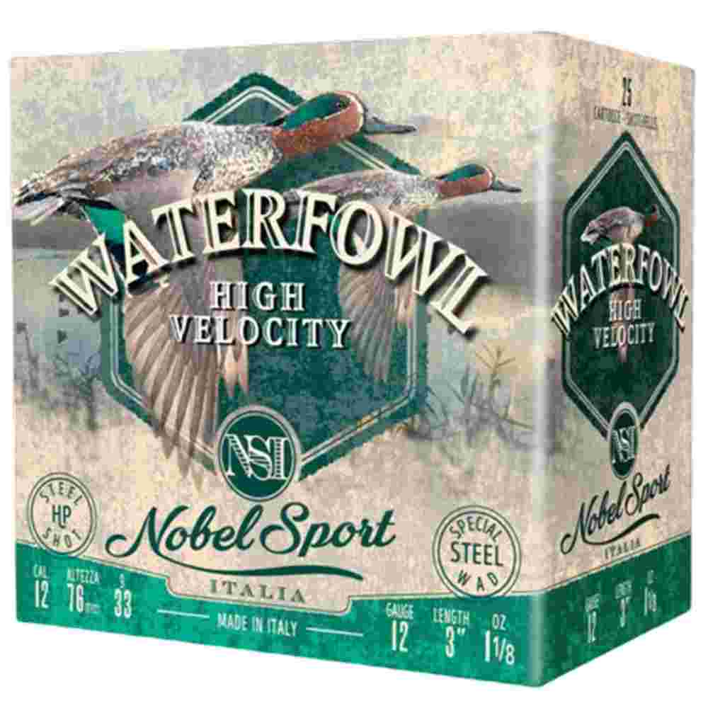 Nobel Sport Steel Waterfowl High Velocity Shotshells 12ga 3″ 1-1/8oz 1500 fps #2 25/ct