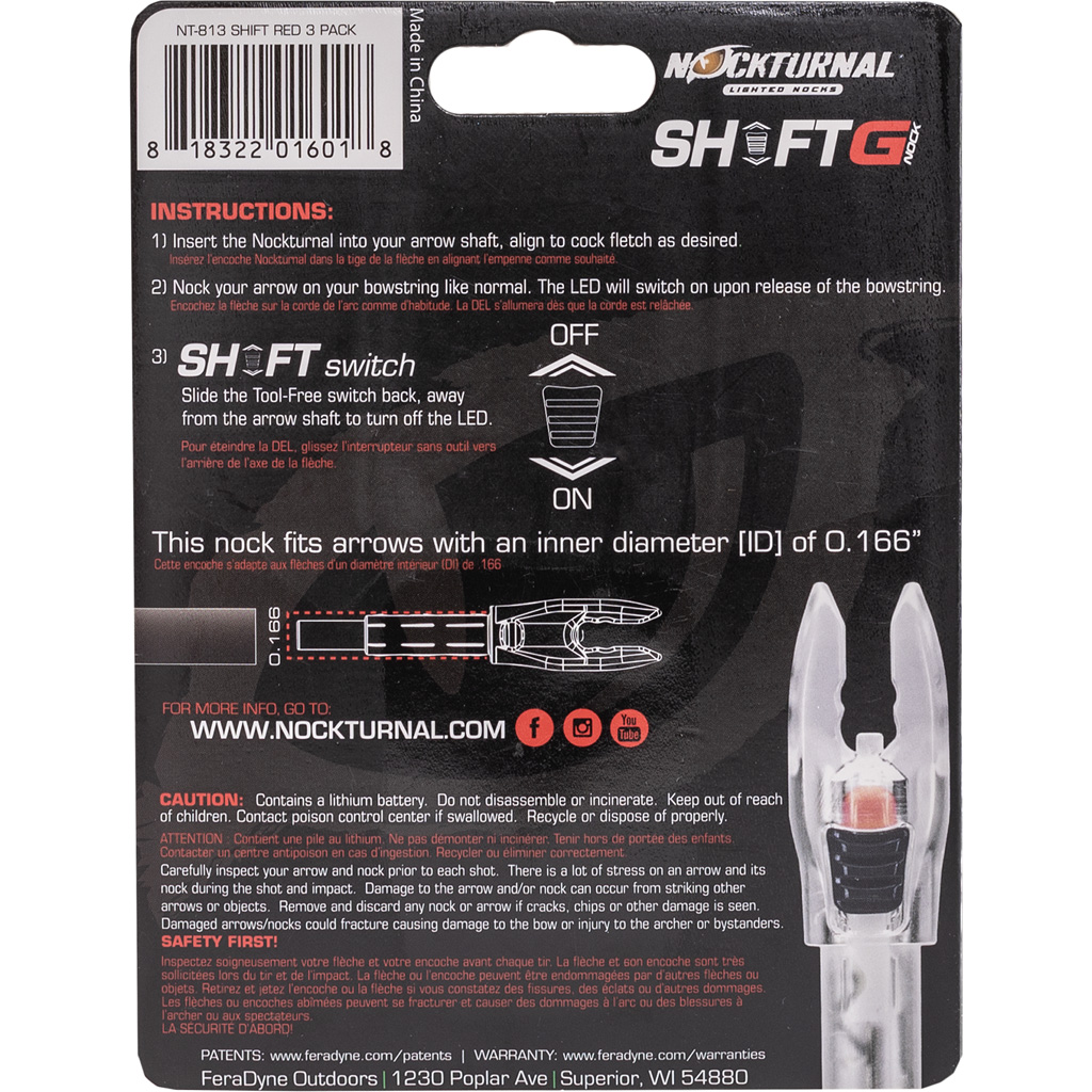 Elevate your archery experience with the Nockturnal Shift FIT lighted nocks, designed to redefine the standards of reliability and user-friendliness in lighted nocks. Featuring a bowstring-activated linear switch, these nocks illuminate ultra-bright LEDs with a simple slide of the external on/off switch, allowing for effortless operation. Constructed from super strong, clear polycarbonate that’s both impact-resistant and durable, these nocks are built to withstand the rigors of use in any environment. They fit .166 ID arrows and come in a pack of three with universal FIT collars.