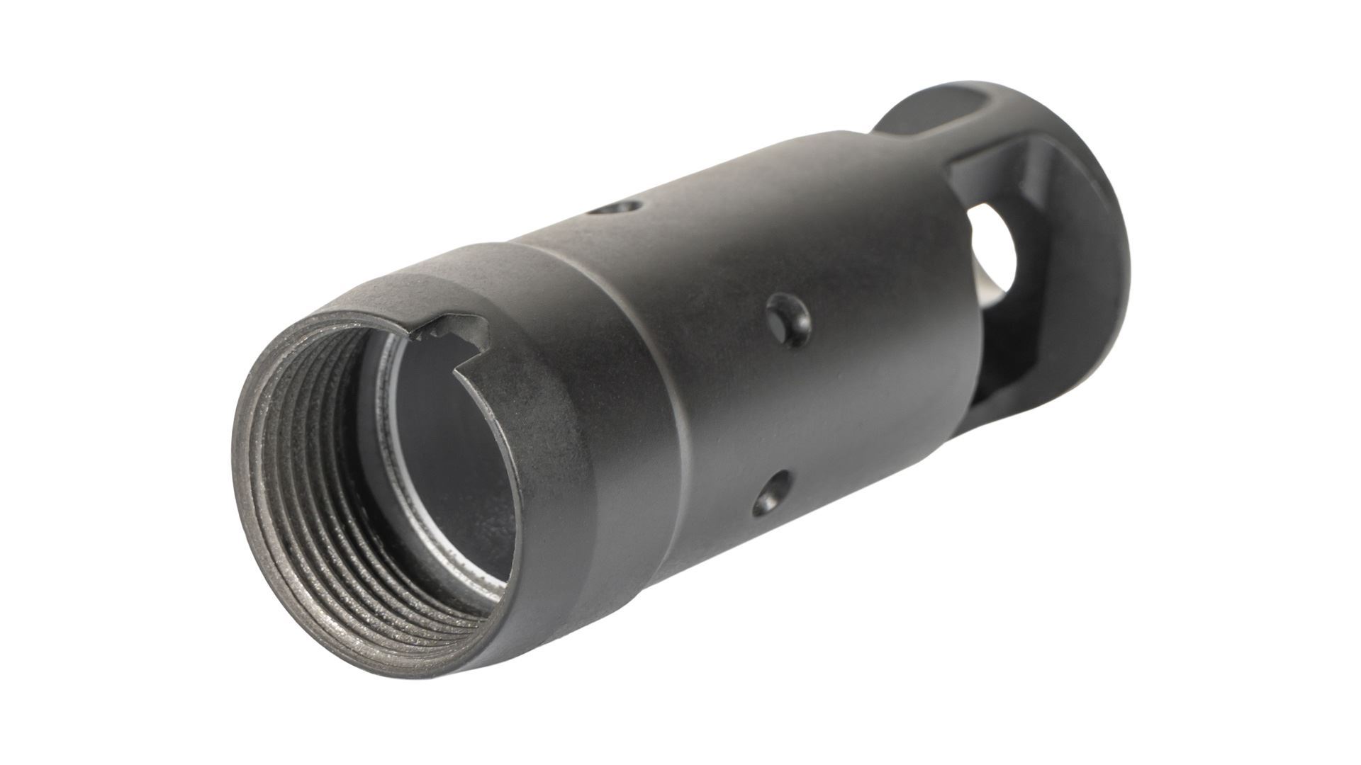 US made replica of Russian Compensator for AK-74 (5.45×39 and 5.56×45 calibers). Fits directly to front sight block 24×1.5mm right-hand threads (DOES NOT FIT DIRECTLY ONTO BARREL). Chrome lined one-piece.