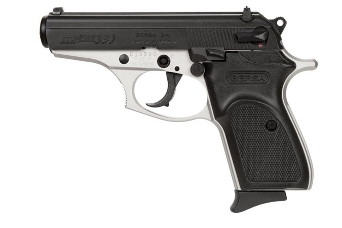 The Thunder .380 Bersa’s best selling model offers numerous valued features accuracy reliability and versatility in a lightweight compact design. It’s easy to appreciate so much for so little. The Thunder .380 has earned a worldwide reputation of quality and is truly one of the best performance-for-price buys on the market. It’s lightweight small-frame and ideal capacity combines with Bersa’s time-tested reliability and accuracy to make the Thunder .380 an excellent choice for personal protection. – Caliber: .380 ACP – Action: DA/SA – Capacity: 8+1 – Barrel Length: 3.5 – Front Sight: Dovetail – Rear Sight: Notched-Bar Dovetailed – Finishes: Duotone Matte Black Satin Nickel – Grips: Checkered Polymer Pink – Construction: Alloy Frame / Steel Slide – Safety: Integral Locking System Manual Firing Pin – Weight: 1.4000 – Length: 6.6 – Height: 4.9 – Width: 1.3