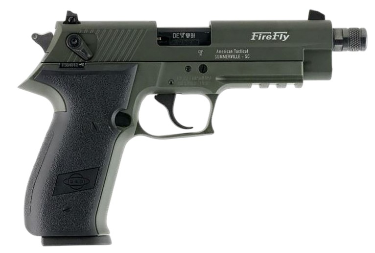 American Tactical Inc (ATI), MFG# GERG2213TFFGA, UPC: 810113113944, UOM: EA, GSG Firefly, .22LR, 4.9″ Threaded Barrel, OD Green, 13-rd, AMT, AMTHG10, AMTHGALL, HG10, HGALL