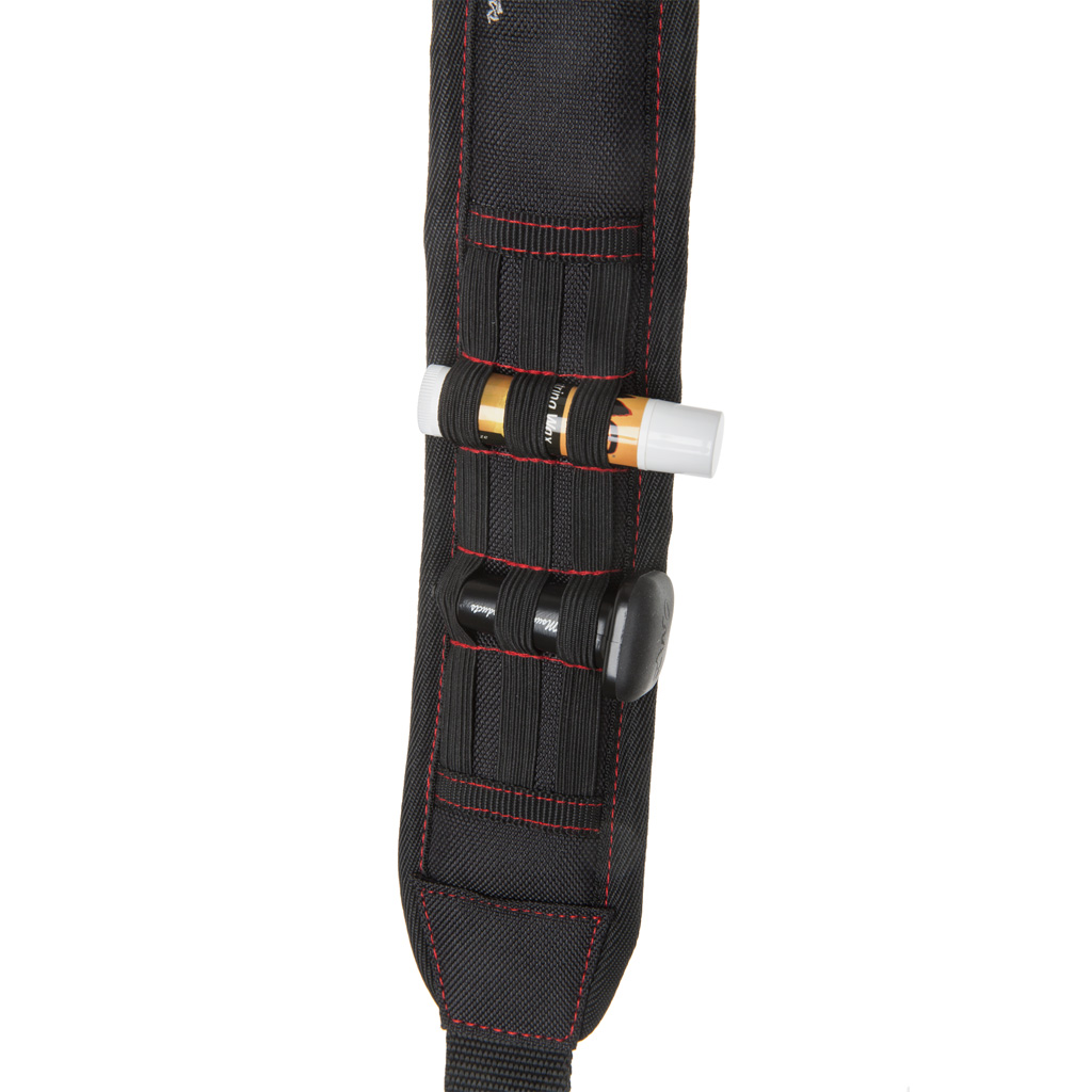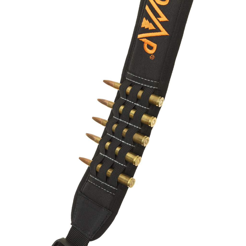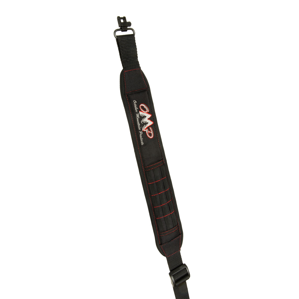 Multi-function sling designed for use with crossbows and firearms. Comfortable slip-proof shoulder pad ensures slip resistant maneuverability. Features convenient elastic loops for holding accessories or ammunition. Fully adjustable design for a custom fit, and comes with quick-detach swivel connectors for ease of installation. Black with October Mountain Logo.