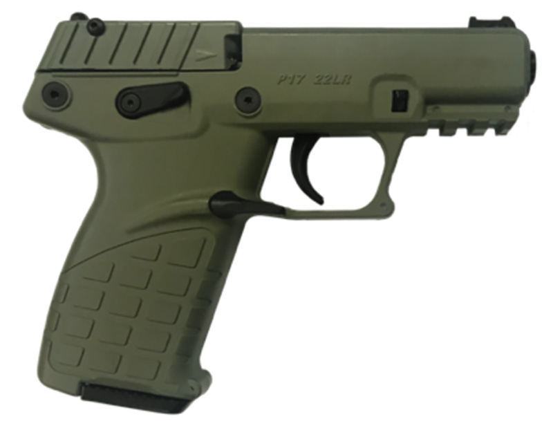 Kel-Tec, MFG# P17GRN, UPC: 640832007916, UOM: EA, P17, 22LR, 3.93″ Barrel, Fiber Optic Front Sight, Green, 16rd, KELT, KELTHG10, KELTHGALL, HG10, HGALL