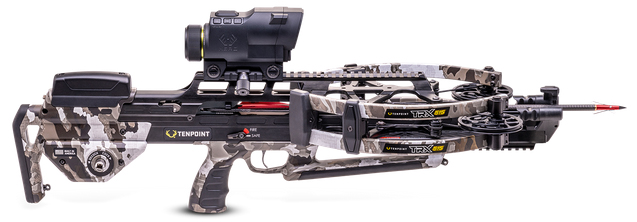 Meet the fastest most accurate and most technologically advanced crossbow the world has ever seen the TRX 515 XERO from TenPoint. – With 30-years of relentless innovation in crossbow technology boundaries have been broken and new standards have been set. – Equipped withe Garmin XERO X1i Rangefinding Scope the reverse-draw TRX 515 shoots 515 FPS and features NEW Twin-Riser Technology that reduces riser flex and limb torq for greater down-range accuracy. – Measuring just 29 short and 6 narrow the TRX 515 is equipped with a newly developed custom-built TriggerTech Trigger NEW ZERO-Trac Barrel and NEW GUIDE-Lock Arrow Rest System that create the most secure consistent launch platform ever built for a crossbow. – The NEW ACU-Lock Scope Bridge provides the ultimate foundation for scope stability and the NEW ACUSlide MAXX provides silent and safe de-cocking. – Features & Benefits – Garmin XERO X1i Rangefinding Scope: Exact Aim. Any Distance. – Twin-Riser Technology: 41% lighter and 2x stiffer than traditional risers resulting in 70% reduced riser flex for unmatched accuracy. – TriggerTech Precision Trigger: Using TriggerTech’s patented Zero-Creep Technology this 3lb. trigger features a clean crisp breaks like glass feel to help improve accuracy and precision. – CenterPunch HPX with Snap-In Nock: Alpha-Nock HPX snaps into the TriggerTech trigger box and allows you to hear and feel that your arrow is properly locked and loaded. – AR-Style Ambidextrous Thumb Safety: Conveniently located safety allows you to keep both hands on the crossbow and eyes locked on your game. – ZERO-Trac Barrel & GUIDE-Lock Arrow Rest System: Rail-less design reduces weight and eliminates arrow friction leading to straight nock travel and greater down-range accuracy. GUIDE-Lock Rest System features three points of contact for security and stability. The arrow rests on two never-wear spring-loaded ball-bearings and is held securely in place by a top-mounted retention brush giving you durability longevity and maximum precision at any distance. – ACUslide MAXX (patented) Cocking & De-Cocking System: Provides silent cocking and safe de-cocking. Stronger smoother and easier to operate. Remove your hand at any point and the handle stops in place. – ACU-Lock Scope Bridge: 25x stronger than traditional scope rails the NEW ACU-Lock Scope Bridge provides the ultimate foundation for scope stability. The full-length dual-mounted machined aluminum bridge allows for more scope adjustment heavier scope options & provides maximum in-the-field durability. – Reverse-Draw Design: Generates more speed with less draw weight for a smoother shot and provides superior balance for increased accuracy. – Package Includes: – Garmin XERO X1i Rangefinding Scope – ACUslide MAXX – 3 CenterPunch HPX Carbon Arrows – Integrated String Stop – Bow Hook – Quiver – 29 Length (w/o foot stirrup) – 12 / 6 Width Axle-to-Axle (uncocked/cocked) – 16 Power Stroke – 300 Draw Weight – 7.2 lbs. Weight (w/out accessories) – ACUslide MAXX Cocking Device – Garmin XERO X1i Rangefinding Scope – Reverse-Draw Draw style – ACUslide MAXX Safe De-Cocking