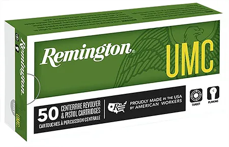 All UMC handgun ammunition is American-made, using first-quality, factory-fresh brass, and clean-shooting Kleanbore primers to provide the best value for practice, personal defense, and hunting.