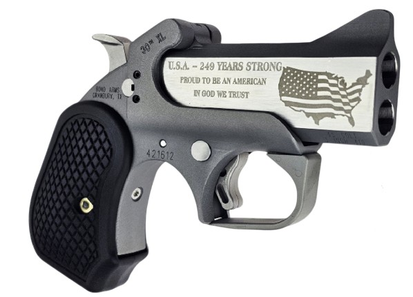 Bond Arms, MFG# BA30th – 45LC/410, UPC: 855959009181, UOM: EA, Rowdy 30th, .45 Colt/.410, 3″ Barrel, Engraved Stainless, Black, 2-rd, BOND, BONDHG25, BONDHGALL, HG25, HGALL