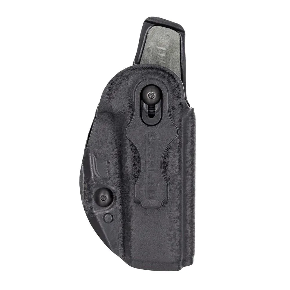 A new species of Boltaron holsters. A minimalist design offers a smaller package versus other IWB holsters. The enhanced material selection and design integration brings Safariland quality materials into this new species of IWB holsters. Dual functionality and tension adjustment allows users to personalize the holster fit feel and draw.