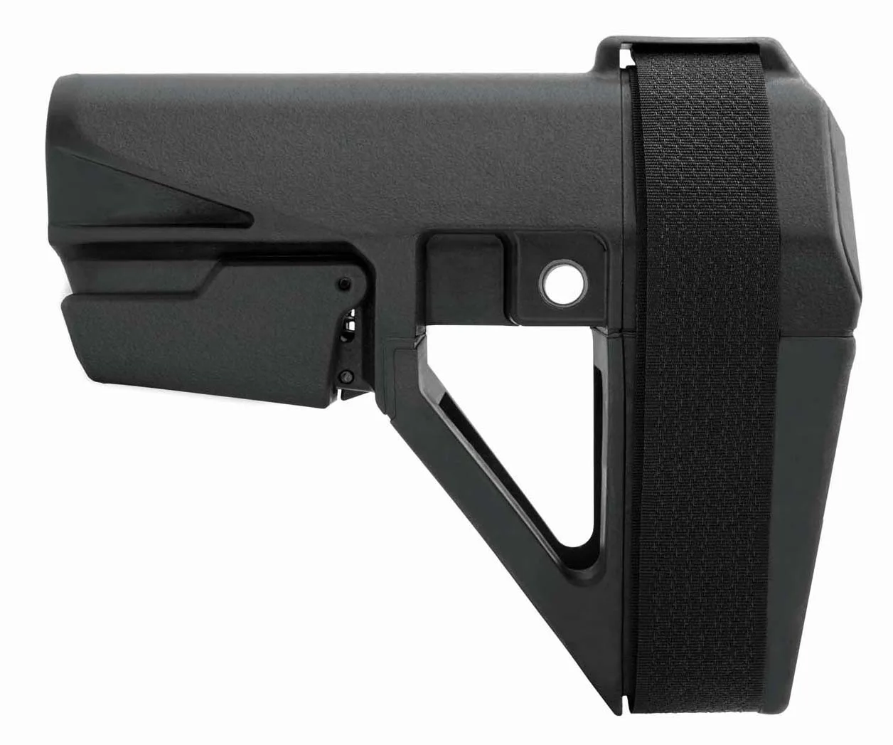 The SBA5 Pistol Stabilizing Brace is 5-position adjustable and designed for all platforms capable of accepting a mil-spec carbine receiver extension. Featuring an integral ambidextrous QD sling socket and an arm cuff based on the original SB15 the SBA5 greatly enhances the usability of the host firearm by providing an additional point of contact. – Features – 5-position adjustable – Integral ambidextrous QD sling socket – Arm cuff size based on the original SB15 – Comes with adjustable nylon strap for a custom fit – US veteran designed – Proudly made in the USA – Product includes: – Brace – Adjustable nylon strap – SBA5 Specifications – fit: All platforms capable of accepting a mil-spec carbine extension – cavity depth: 6.0 – length: 6.2 (brace only) 7.5 (collapsed) 10.25 (extended) – strap width: 1 – weight: 9 oz – color: Black – width [max]: 2.1