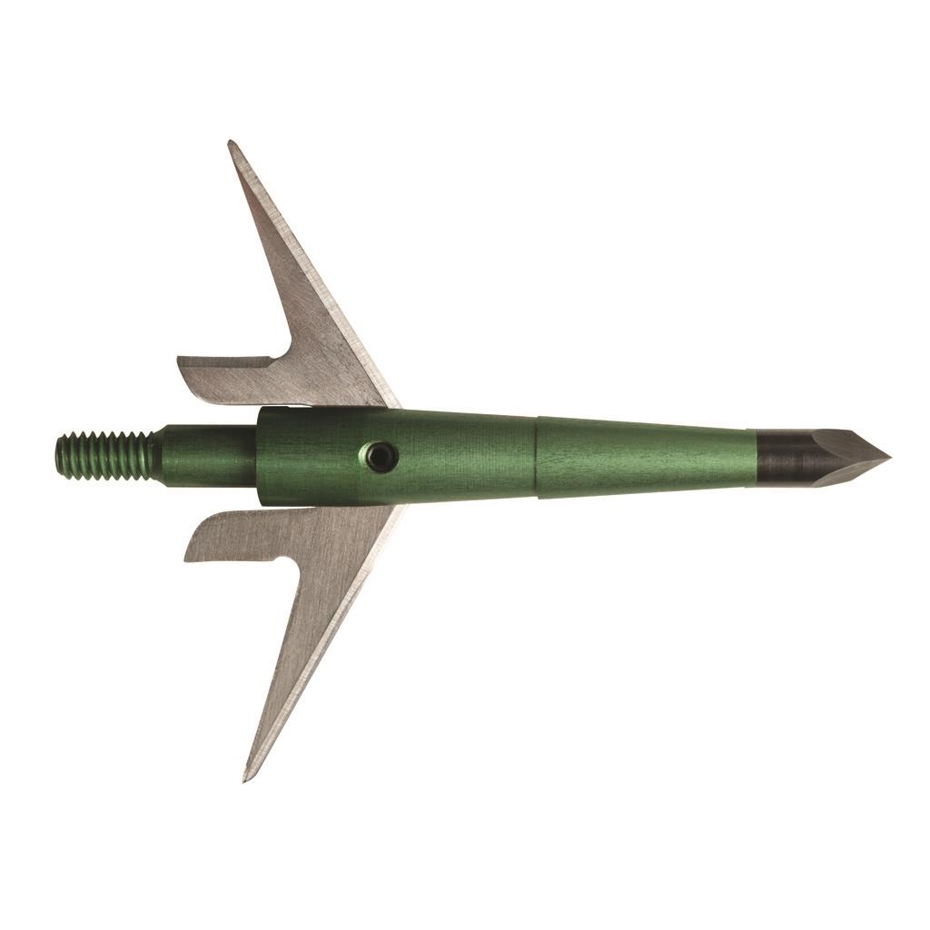 Expandable broadhead designed to fly just like a field point. Uses “wing blades” to open the main blades for reliable deployment. Features .032″ blades, anodized aluminum ferrule, and hardened high-carbon steel point.