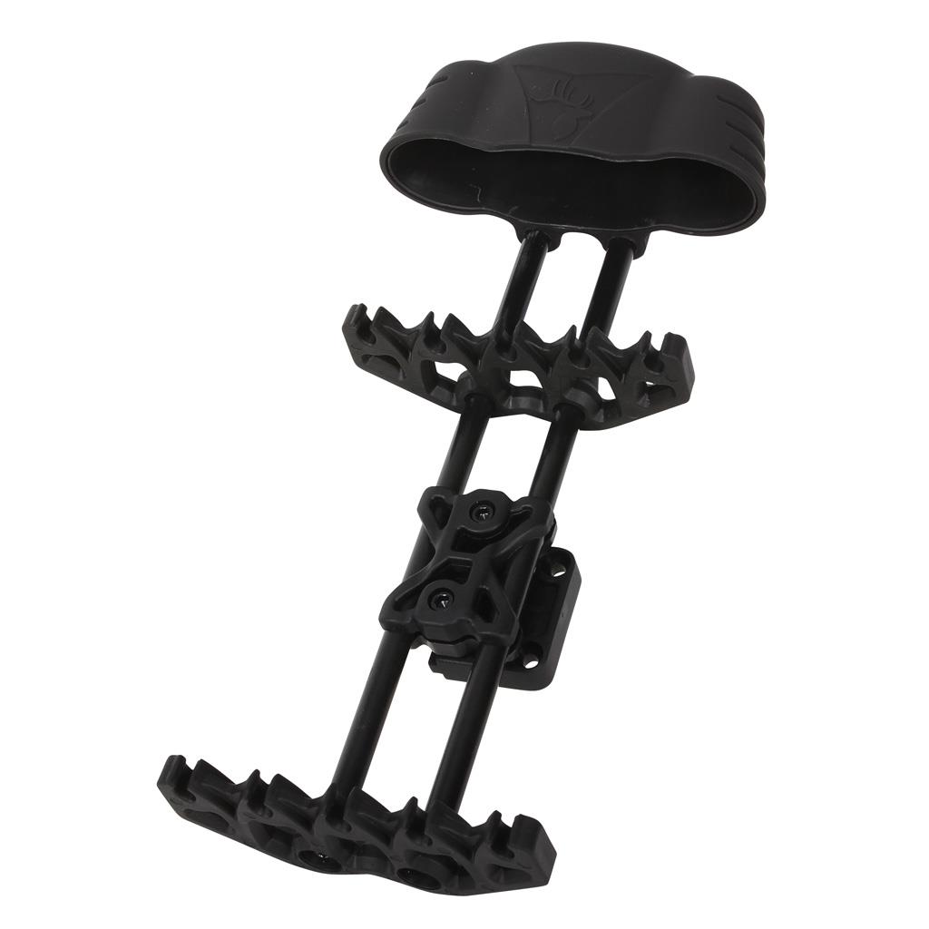 Designed with adjustable dual arrow grippers to securely hold 5 arrows in place. Soft touch hood eliminates unnecessary noise. Quick detach mounting bracket allows for easy removal. Can be used for fixed-blade or mechanical broadheads.