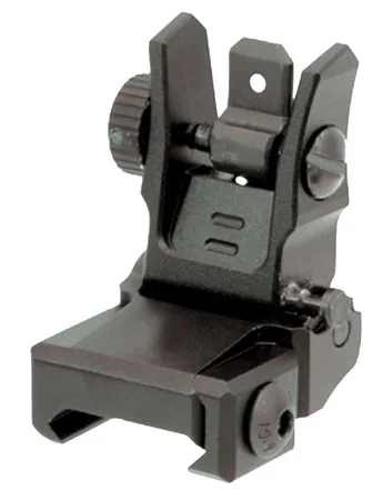 Leapers Spring-Loaded Low Profile Flip-Up Rear Sight for AR15 is constructed of aluminum with a black finish and a low profile. Spring-loaded posi-lock push button activation automatically deploys sight tower and prevents sight tower from collapsing when deployed. Features tool-free windage adjustment and dual apertures ideal for a variety of different scenarios. Utilizes a single locking Torx screw, 3mm locking bolt and mounting deck. Torx Locking plate Recommended Torque Value: 35 in-lbs.