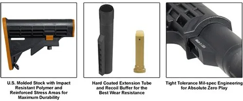-Stock assembly complete with action spring, buffer assembly, tear-drop ring, & castle nut