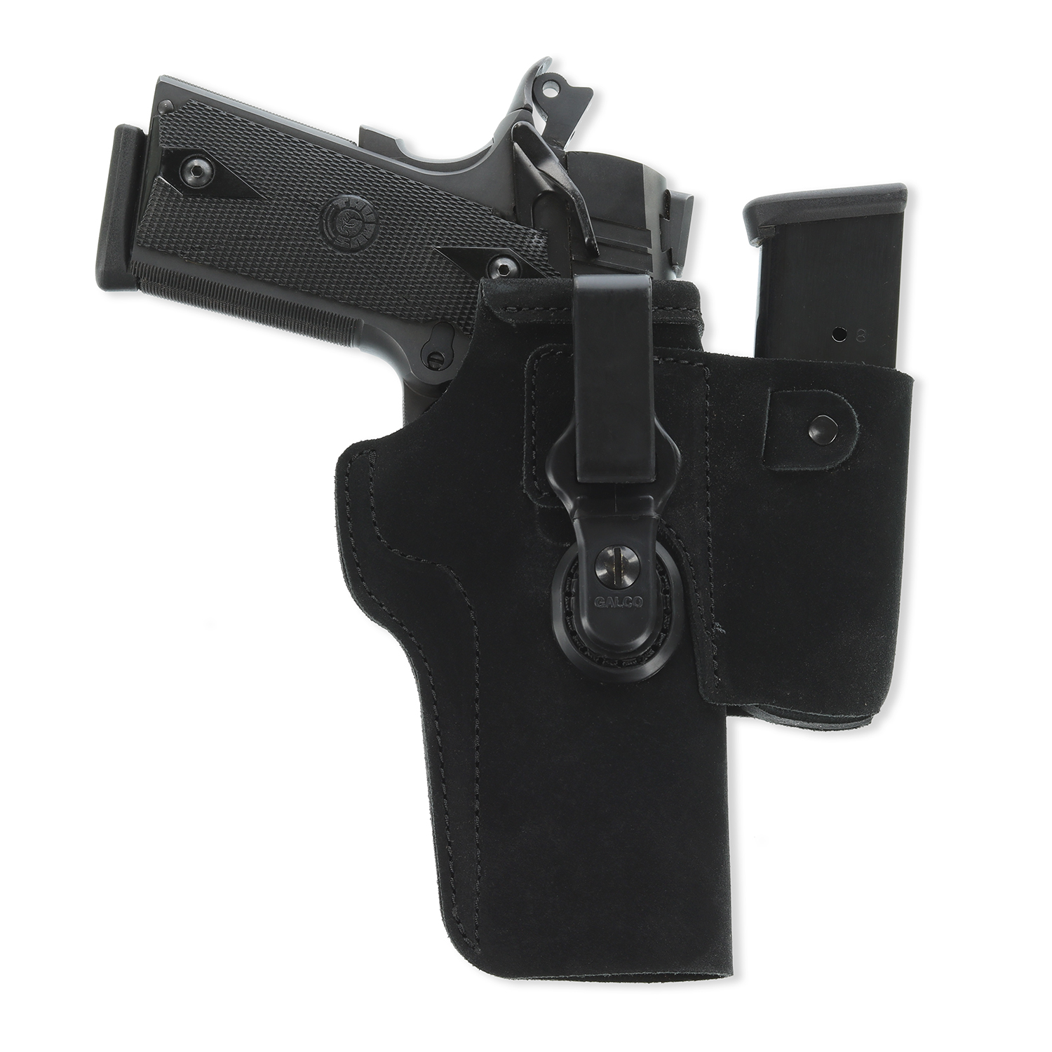 Part of Galco’s Concealed Carry Lite line of holsters, the WalkAbout 2.0 offers all the benefits of the Tuck-n-Go 2.0 – with the addition of an attached spare magazine carrier! It’s an exceptional combination of high performance, comfort and affordability. The WalkAbout 2.0’s open top allows a very fast draw, while the reinforced mouth allows a smooth and easy return of the gun to the holster. The WalkAbout 2.0’s belt clips are adjustable for cant, making it suitable for the strongside, crossdraw, or appendix carry positions. The ambidextrous WalkAbout 2.0 is supplied with two types of interchangeable tuckable clips. The first is the UniClip, designed to go over the belt, but which also works well without a belt. The second is the Ultimate Stealth clip with hook, which fits on the trouser waistband, under or behind a belt with just the clip showing, for the ultimate in stealthy concealment! Gun Fit – Sig-Sauer P239 9mm Gun Fit – Sig-Sauer P239 .40