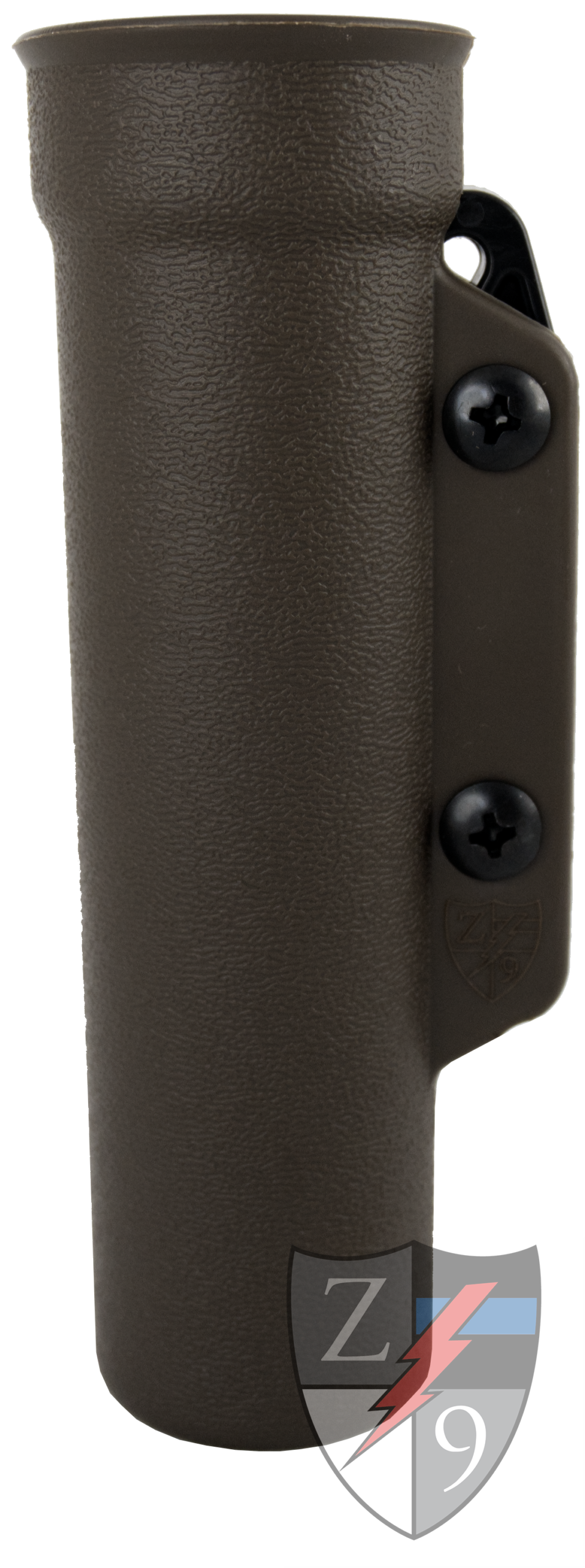 Ruggedized, lightweight upgrade for your flashlight. This case allows you to carry your flashlight bezel up and only takes up 1 column of molle channel. If you opt for the Tek-Lok to be used on a duty belt you can get multiple fixed mounting angles to suit your needs. Compatible with multiple lights in the 1.25” handle diameter family (such as the Poly Stinger and Nightstick NSR-9924XL). Adjustable retention lanyard included.