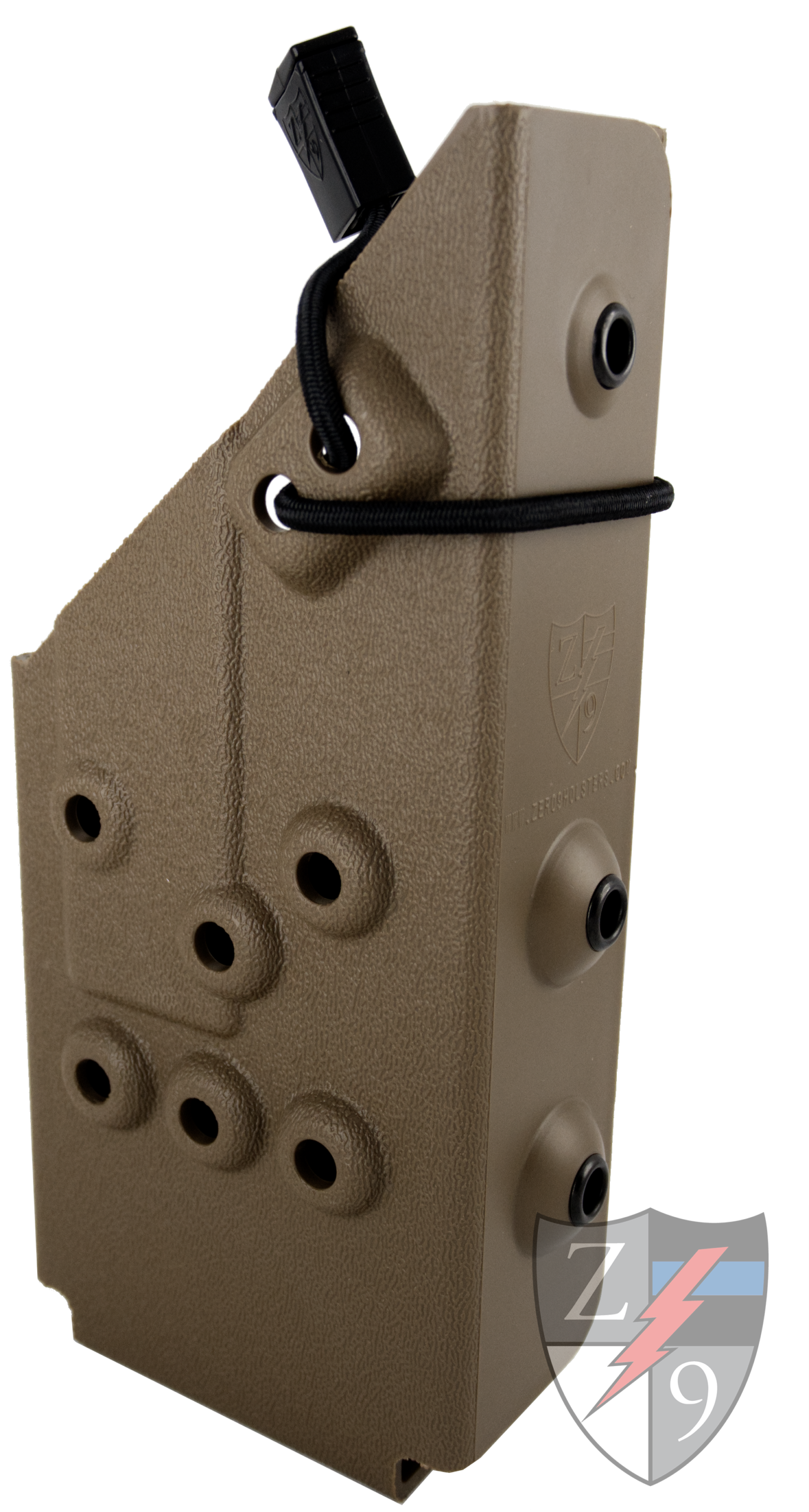 Ruggedized upgrade for your Taser X26, X26P, X2 or Taser 7. These cases are ambidextrous and available with 2 Molle-Loks or a Tek-Lok attachment. The case protects the trigger and cartridge doors and is secured with a shock cord retention lanyard. The Zero9 Taser Case can be mounted vertically or horizontally on a Molle Vest or vertically, horizontally or at a 45 degree angle on a duty belt. Fits the Axon/Taser Taser 7 (does not fit other models). Can mount other Zero9 cases to the front of this case. Ambidextrous draw configurations.